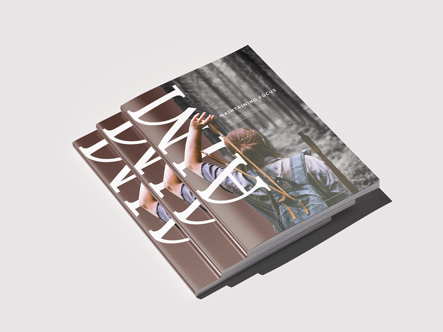 This publication’s identity is driven by experimental typography that mirrors the rhythm, skill, and precision of archery. Letterforms stretch, align, and fragment to emulate the tension of a drawn bow and the release of an arrow, creating compositions that feel both controlled and expressive. AIM blends a sense of adventure with tranquility, using its visual system to evoke spiritual growth and intentional living, ultimately inviting readers into an experience that is as introspective as it is visually striking.